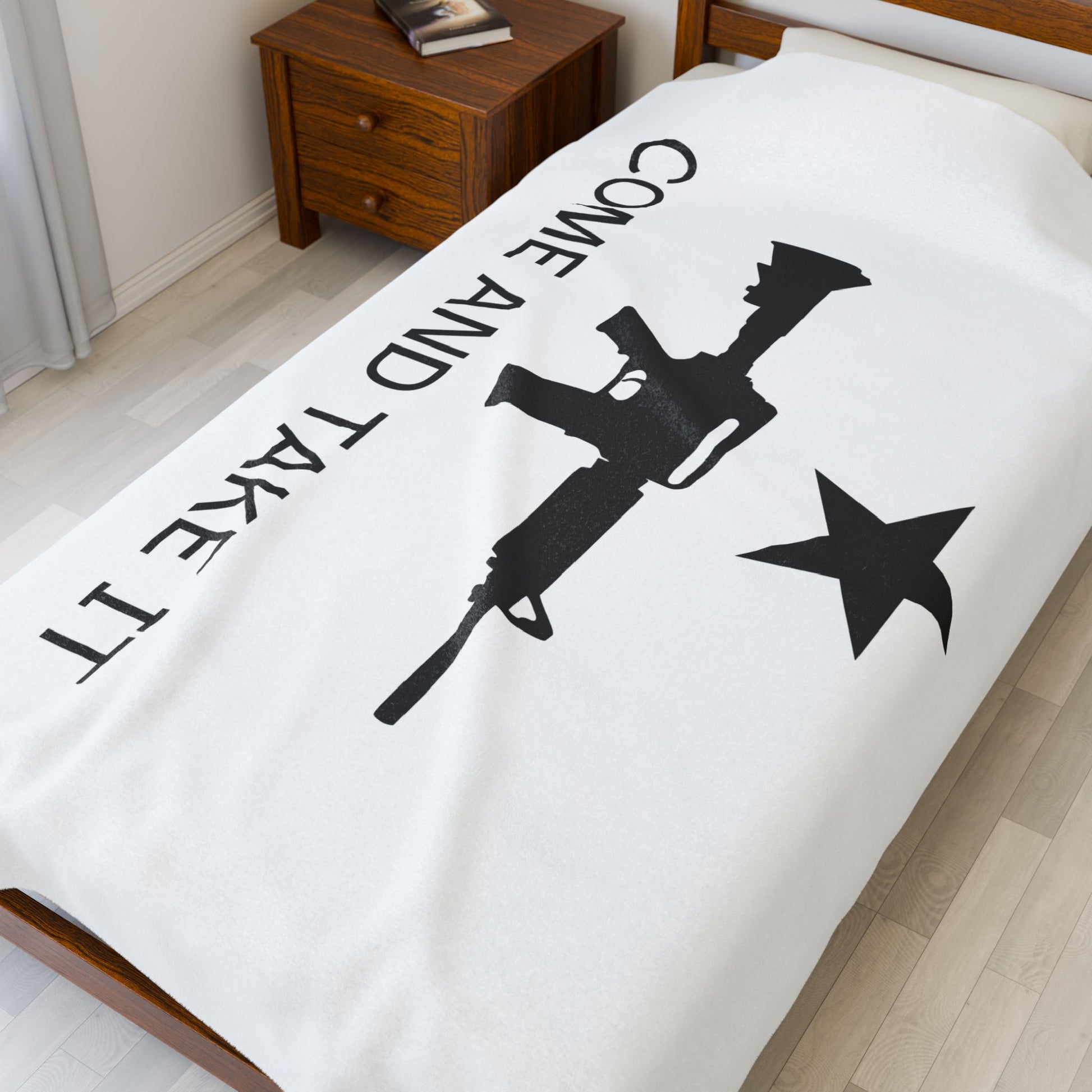 AR-15 Come and Take It Velveteen Plush Blanket – Patriotic Gun Rights Throw, Soft Cozy Couch & Bed Blanket
