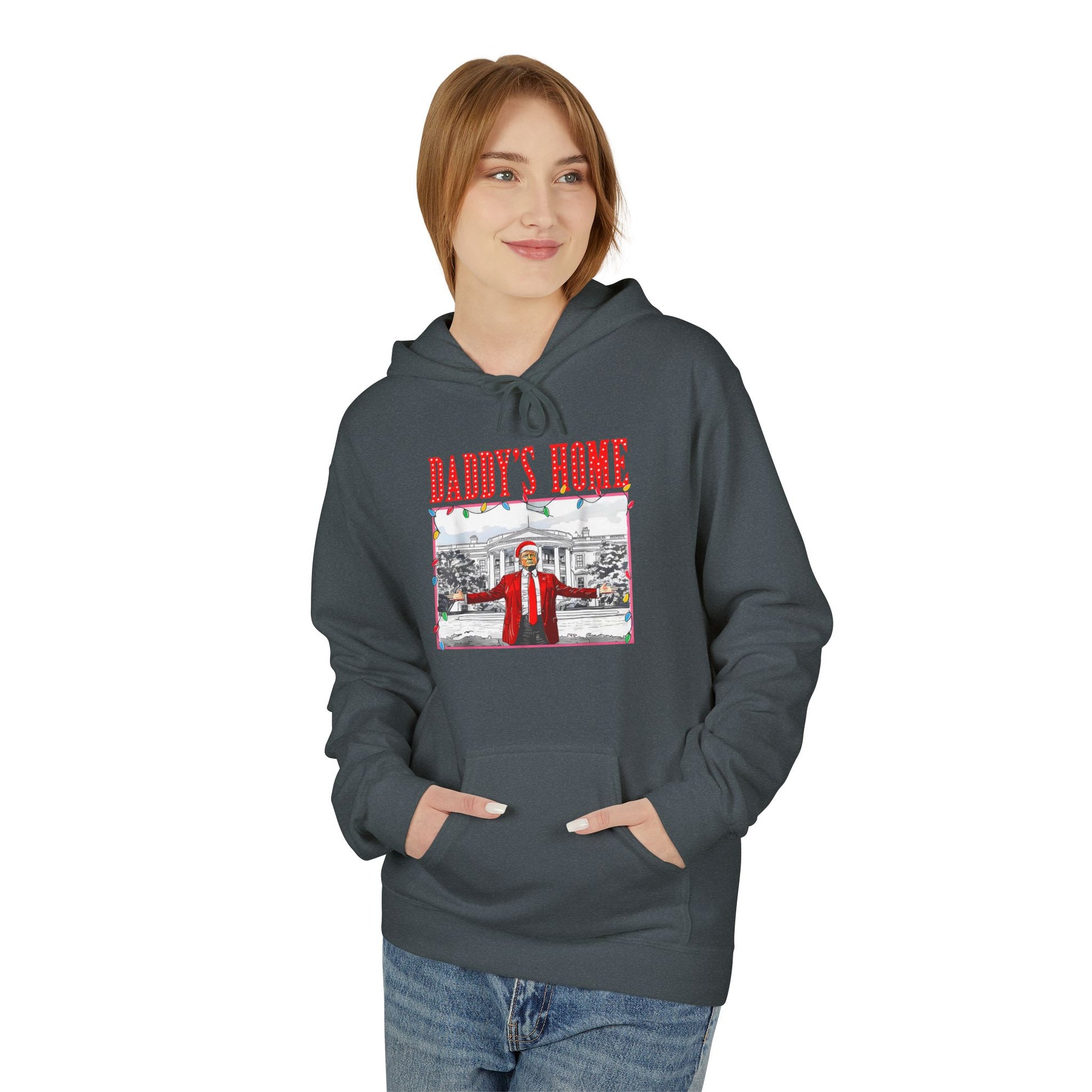 Crafted from a soft, premium cotton-poly blend, it delivers all-day warmth and comfort. The eye-catching “Daddy’s Home Trump” graphic makes it clear—you’re proud, you’re funny, and you’re unapologetically patriotic.