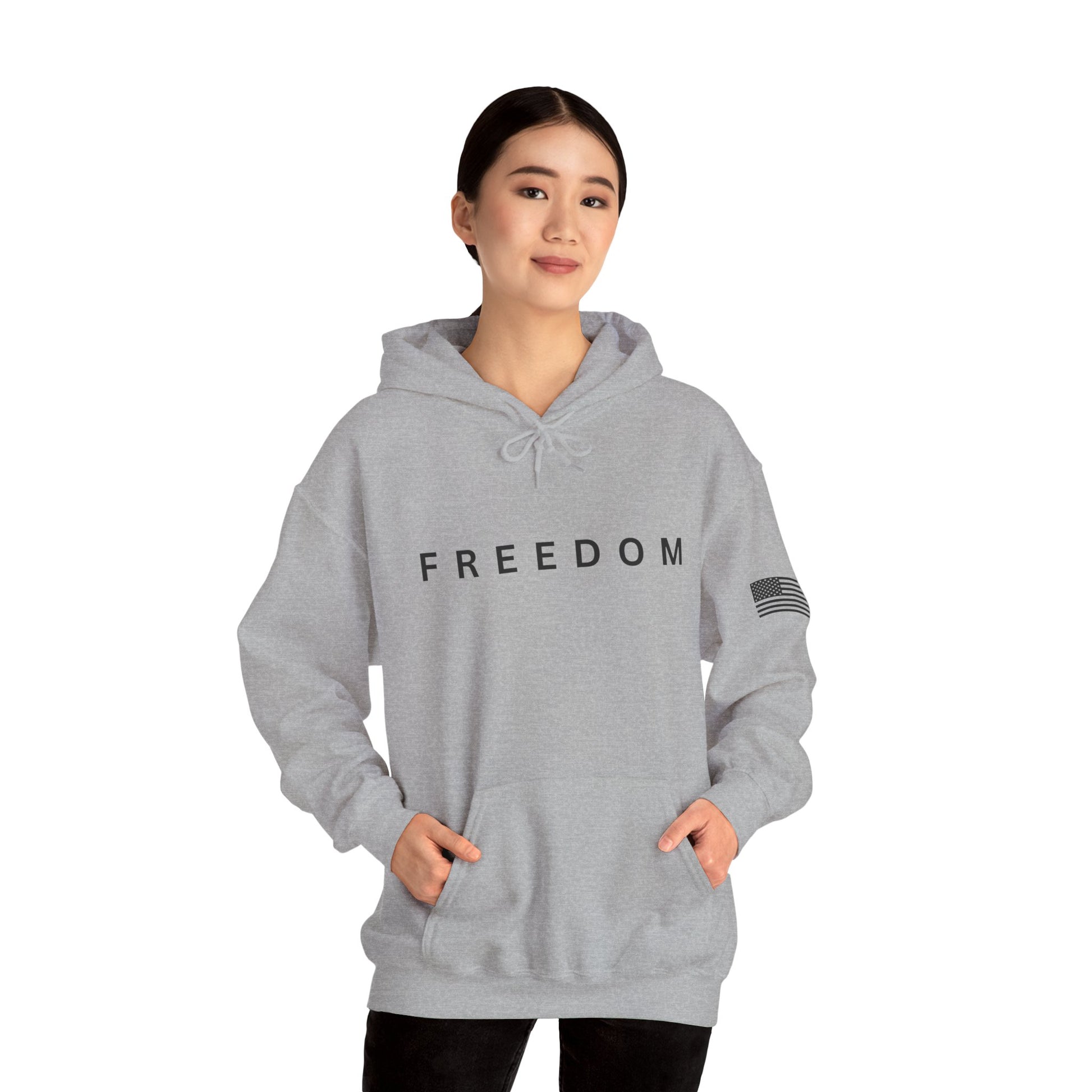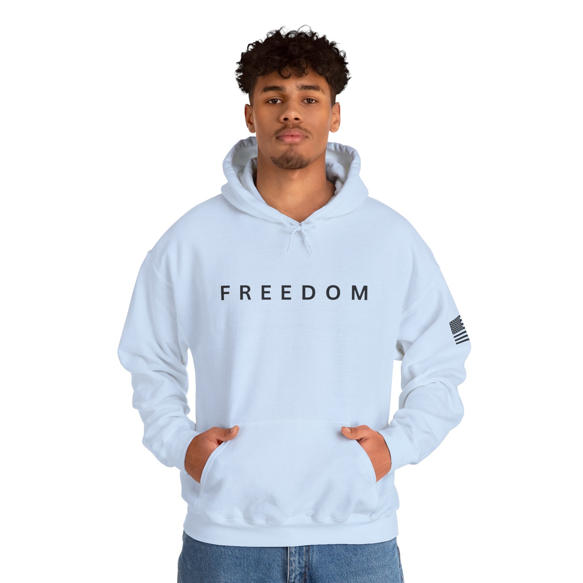 Show your American pride and support for Charlie Kirk with this Made in USA unisex Freedom Hoodie. Featuring bold “FREEDOM” lettering across the chest and an American flag displayed on the arm, this hoodie combines comfort, style, and a powerful statement of liberty.